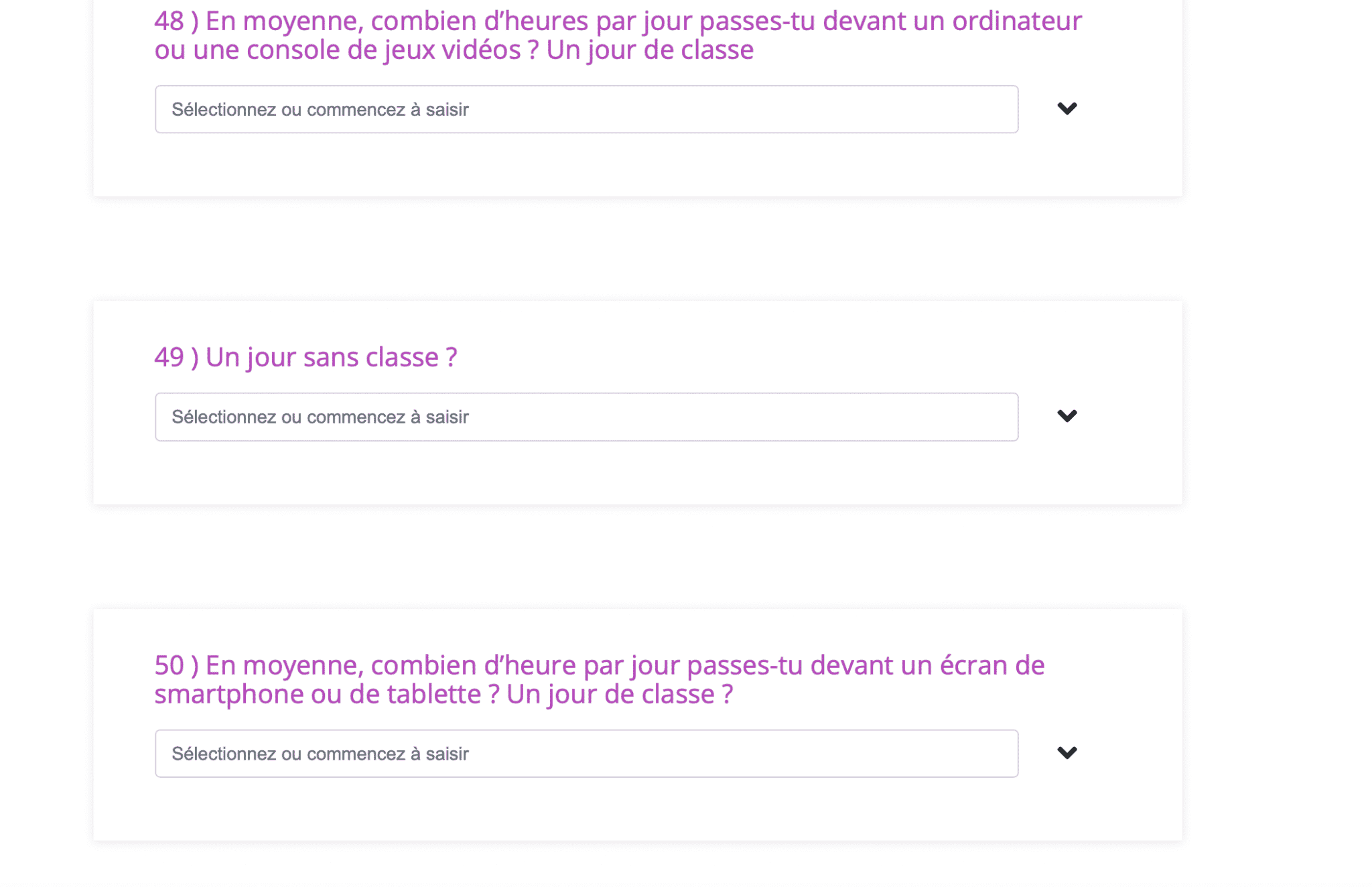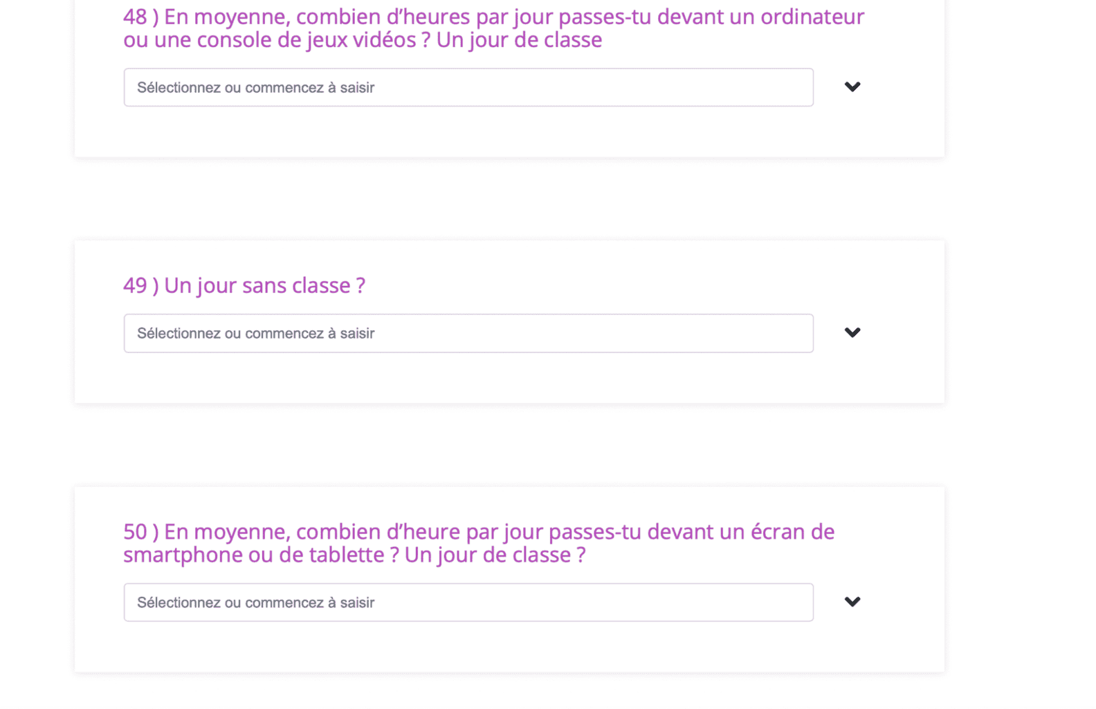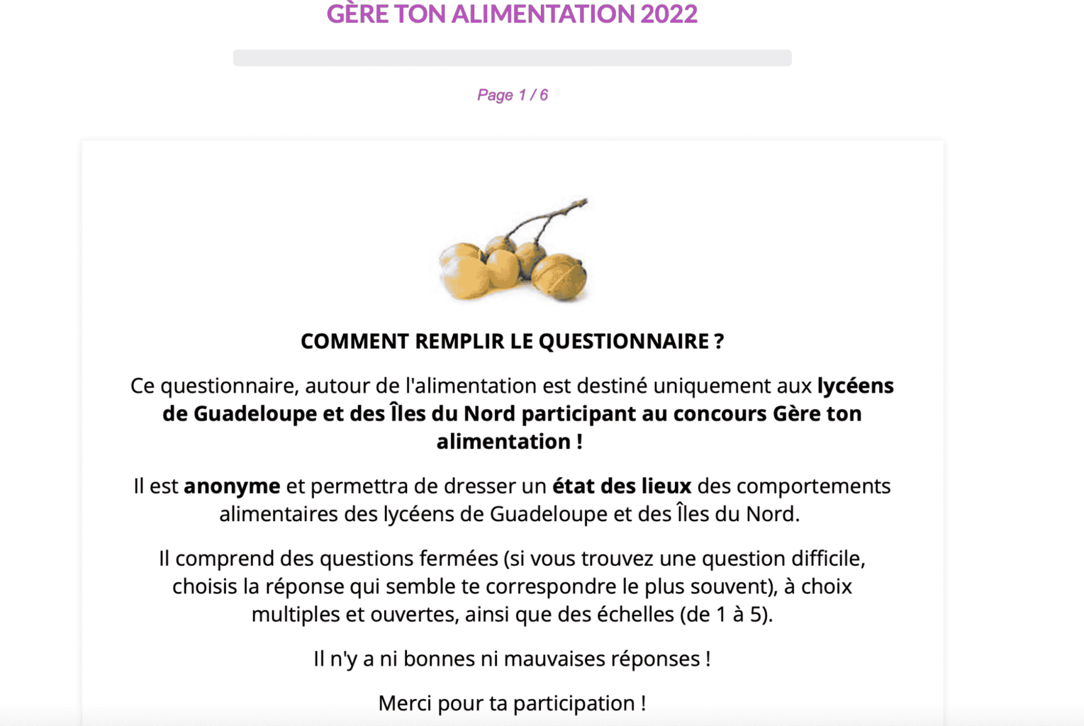 Les résultats de ce questionnaire seront partagés à la fin du concours.